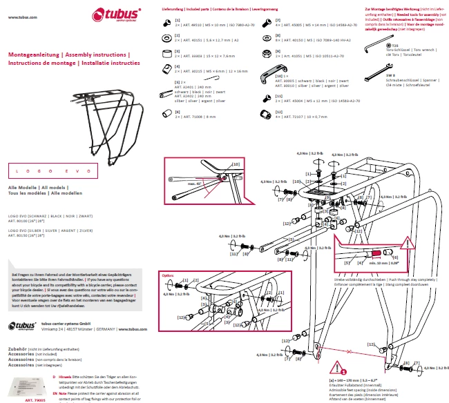 Montage Porte-bagages arrière 26″ à 28″ Tubus Logo Evo :