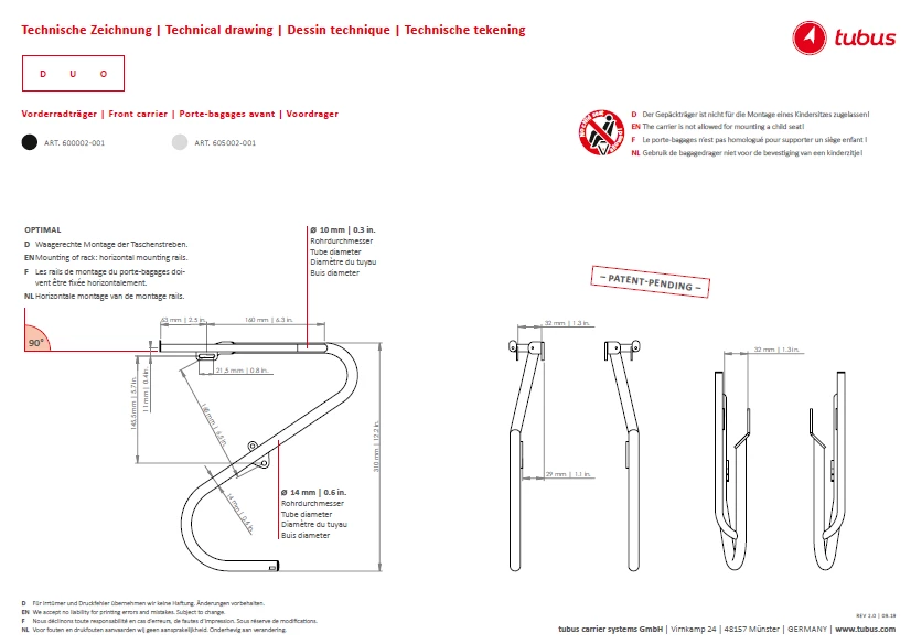 Vous pouvez adapter quasiment toutes les sacoches. Le Tubus Duo supporte des charges extrêmes.