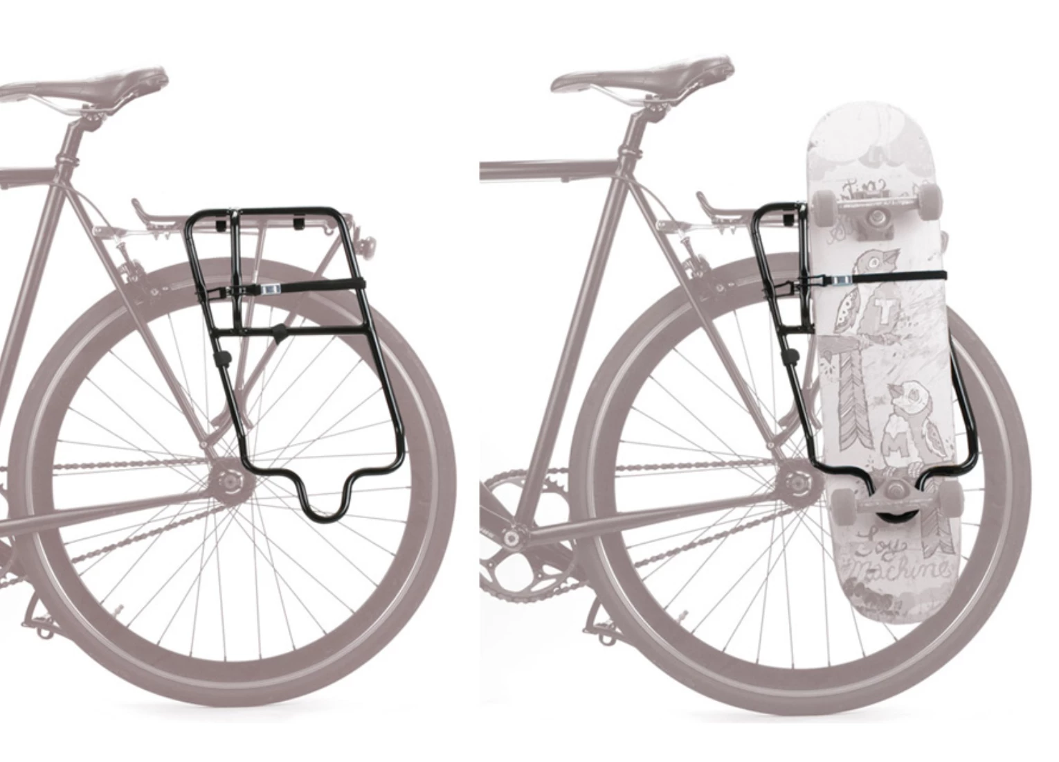 Le Fairdale Skaterack est la façon la plus simple et la plus facile à transporter une planche à roulettes sur un vélo. Outil de fixation libre à la plupart des porte-bagages arrière.