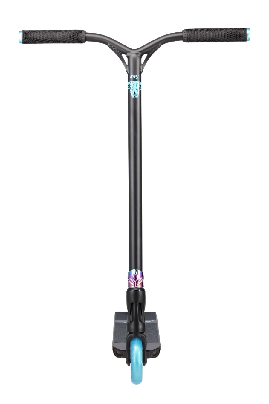 Les NOUVELLES caractéristiques des KOS comprennent : Barres en en aluminium – construction légère et durable avec un look agressif ; Poignées Signature Will Scott – extrêmement durables et offrent l’adhérence parfaite pour le scooter avec une protection supplémentaire de la barre avec les extrémités Halo ; Le profil avant en relief ajoute un style ultime et une protection à 82,5 degrés. En utilisant la douille de direction signature AOSv4 combinée à la découpe de la douille de direction KOS, cela nécessite un profil de pont de fin.