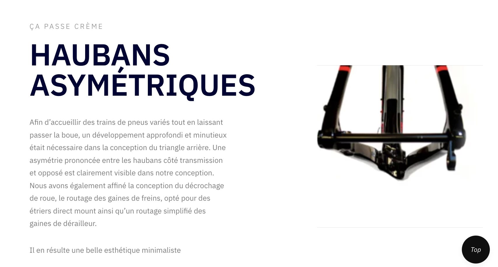 Nous avons également affiné la conception du décrochage de roue, le routage des gaines de frein, opté pour des étriers direct mount ainsi qu’un routage simplifié des gaines de dérailleur.