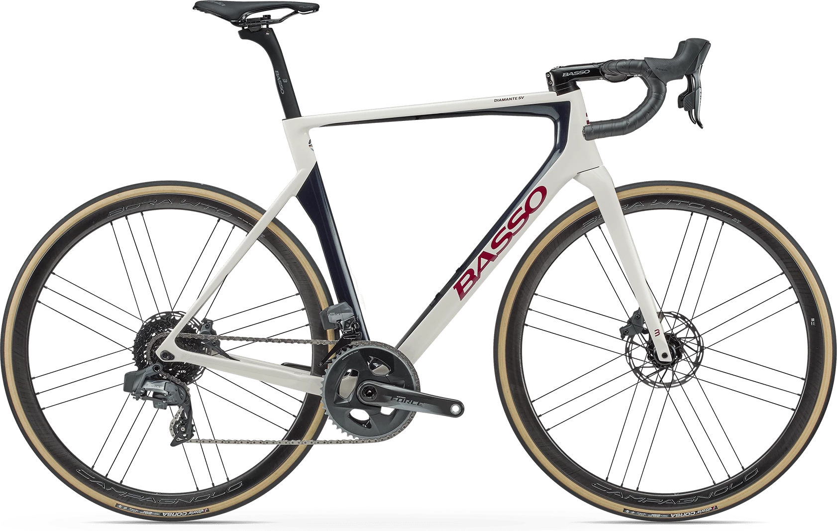 Le Diamante, c’est le summum au sein de la marque Basso. Ajoutez-y les lettres SV, pour Super Veloce, et vous obtenez un vélo où chaque détail a été pensé pour la vitesse.