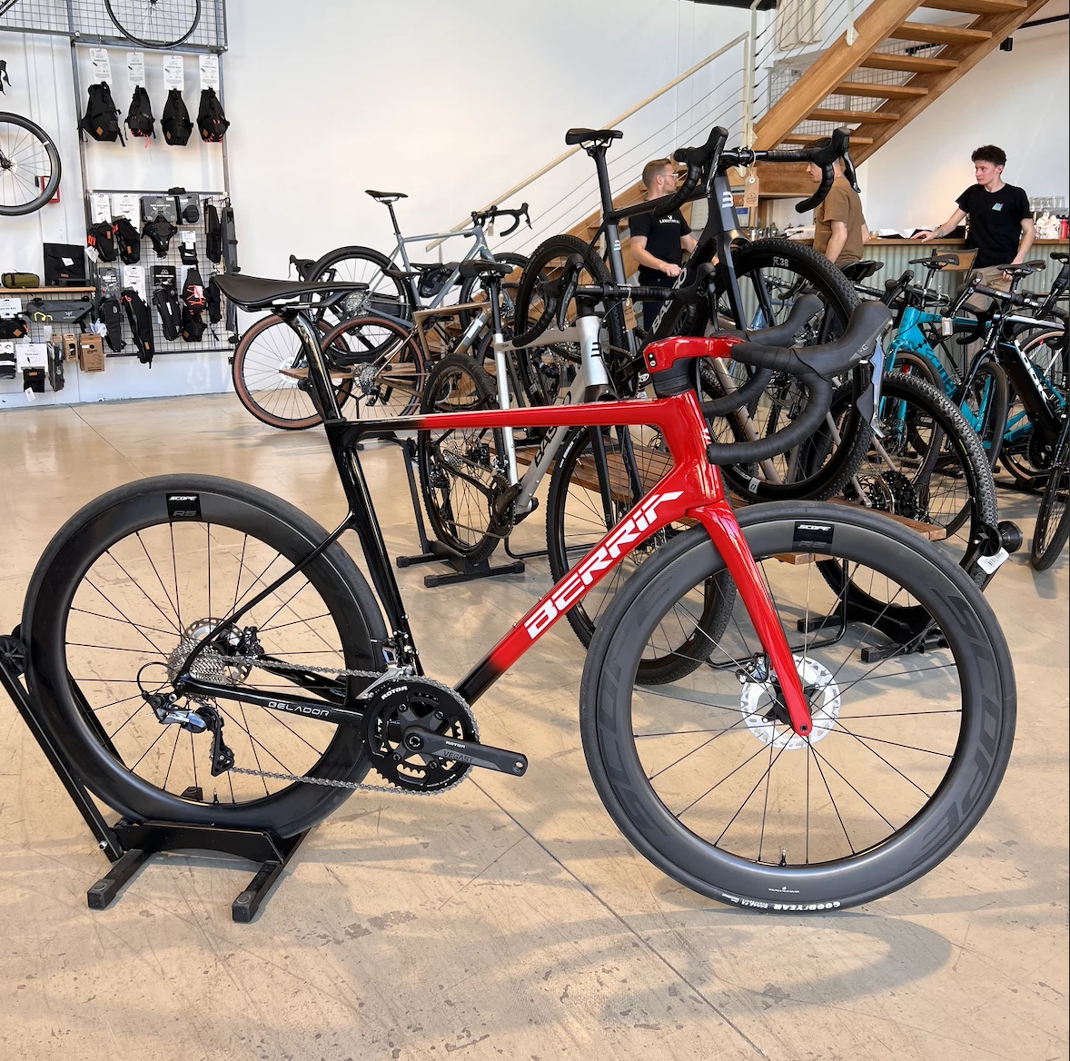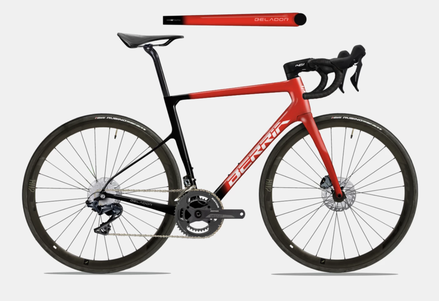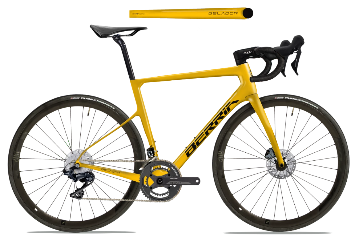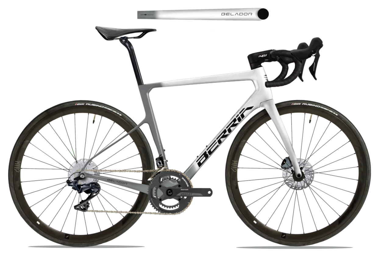 Cadre: PeintureBelador 5 DISC, Racing Geometry BGC Aero Shape Efficiency (ASE), Full carbon HM2X, Triple monocoque, Resin Matrix Nanotech, BB86 botton bracket, Full internal cable system ICS2, Headset semi integrated OH2S 1-1/2″- 1-1/ 2″, frein Flat Mount System, pneu maximun 700×34, axe traversant 12x142mm type Speed Release, poids 990g